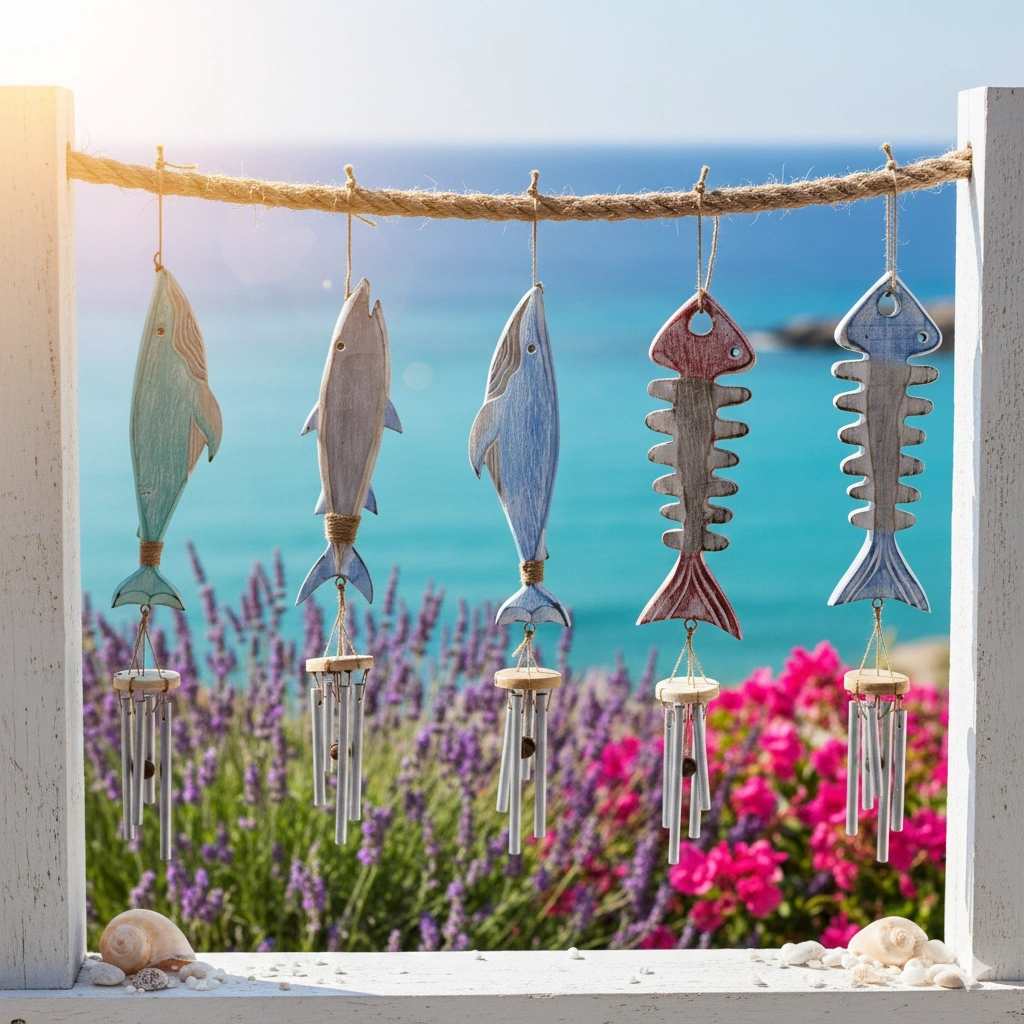 Ahşap balıklı metal çan, deniz temalı tasarımı ve doğal malzemeleriyle hem dekoratif hem de huzur verici bir ses deneyimi sunan özel bir üründür. 70 cm boyutunda olup, el işçiliğiyle üretilmiş detaylarıyla dikkat çeker. Ahşap gövdeye sahip olan balık figürü, alt kısmında bulunan metal çubuklarla rüzgarın etkisiyle hoş melodiler yayarak ortama sakinlik katar. Balkon, teras, bahçe ve iç mekan dekorasyonları için şık ve doğal bir tamamlayıcıdır.