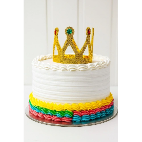 Altın Işıltılı Pasta Üstü Taç Plastik