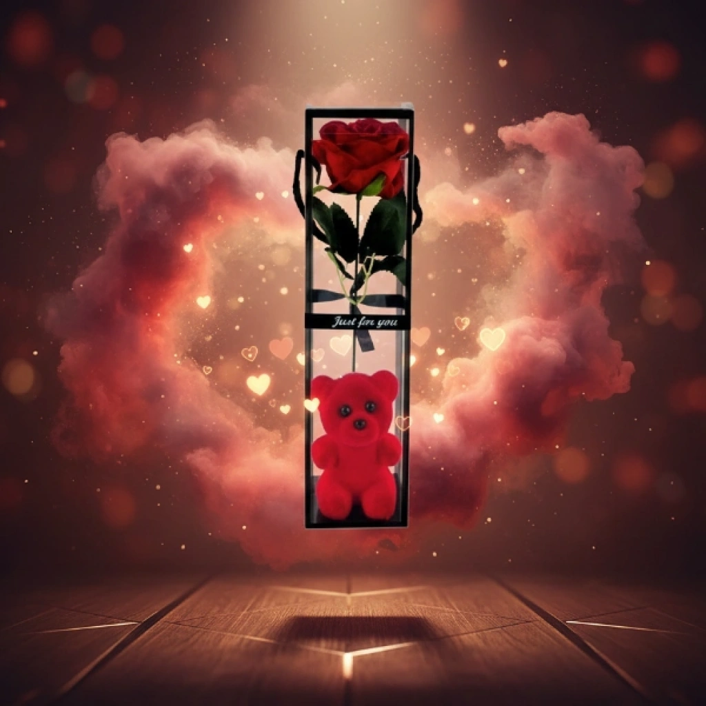 AYICIKLI ŞEFFAF KUTULU TEKLİ GÜLÜrün ÖzellikleriAyıcıklı şeffaf kutulu tekli gül, zarif sunumu ve sevimli detaylarıyla özel günlerde duyguları en şık şekilde ifade etmeye yardımcı olan dekoratif ve hediyelik bir üründür. Şeffaf kutu tasarımı, içerisindeki tekli yapay gülü ve alt bölümde yer alan ayıcık figürünü estetik biçimde sergileyerek modern ve dikkat çekici bir görünüm sunar. Kompakt ve dikey formu sayesinde masa, raf ve vitrin üzerinde kolaylıkla konumlandırılabilir. Minimal tasarımıyla her dekorasyon stiline uyum sağlayan bu model, sevgililer günü, doğum günü ve yıl dönümü gibi özel anlarda şık hediyelik gül arayanlar için ideal bir tercihtir. Kutulu yapısı sayesinde hediye sunumunu pratik ve etkileyici hale getirir.Ürün Teknik Özellikleri Özellik Açıklama Ürün Adı Ayıcıklı Şeffaf Kutulu Tekli Gül Tasarım Şeffaf kutu, tekli gül ve ayıcık figürü Gül Türü Yapay dekoratif gül Kullanım Alanı Masa, raf, vitrin Kullanım Amacı Dekoratif ve hediyelik Paket İçeriği1 adet ayıcıklı şeffaf kutulu tekli gül