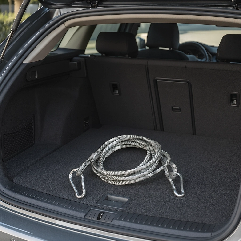 Çelik oto çekme halatı, dayanıklı ve yüksek taşıma kapasiteli yapısı sayesinde araç çekme işlemlerinde güvenli kullanım sunar. Sağlam çelik örgü kablosu 3.5 tona kadar çekme gücü sağlayarak acil durumlarda pratik ve etkili bir çözüm oluşturur. Her iki ucunda yer alan güçlü karabina tipi bağlantılar, araca kolayca sabitlenmesini ve çekme sırasında maksimum güvenlik sağlamayı mümkün kılar. Esneme yapmayan çelik kablo yapısı sayesinde aracın ağırlığını dengeli şekilde taşır ve uzun süreli kullanımda deformasyona uğramaz. Kompakt formu sayesinde bagajda az yer kaplar ve ihtiyaç duyduğunuz her an hazır halde bulunur.