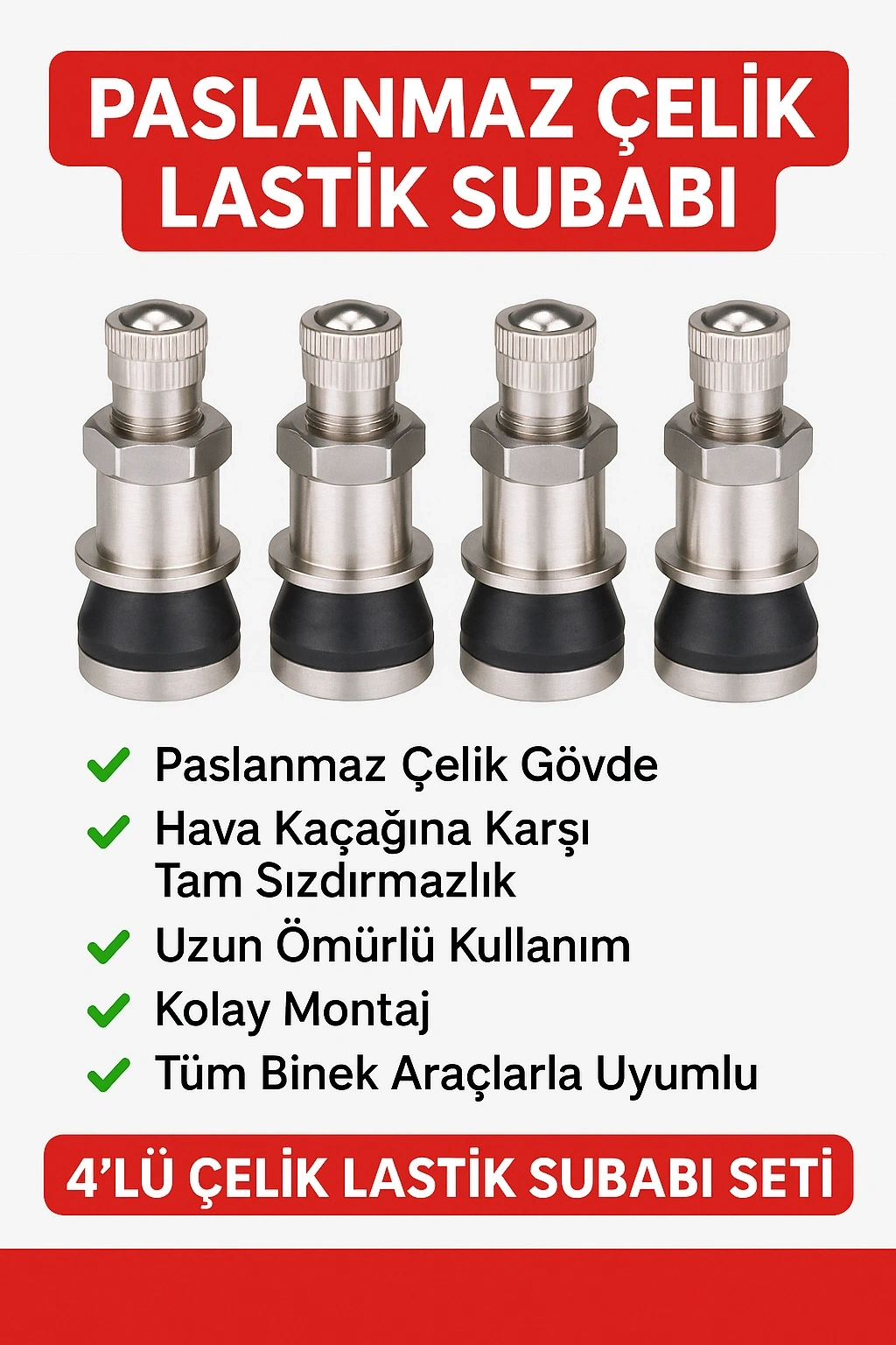 Ürün ÖzellikleriDayanıklı çelik yapıya sahip olan Çelik Sibop, araç lastikleri için uzun ömürlü ve güvenli kullanım sunar. Metal gövdesi sayesinde yüksek basınca karşı dayanıklıdır, darbelerde kolayca deformasyon göstermez ve lastik havasının kaçmasını engelleyerek güvenilir sürüş sağlar. Kauçuk conta bölümü, sibop ile lastik yüzeyi arasında güçlü bir sızdırmazlık oluşturur. Paslanmaya karşı dirençli yapısı sayesinde yağmur, çamur ve yol koşullarına karşı dayanıklıdır. Bisiklet, motosiklet ve otomobil gibi pek çok araç lastiğinde kullanılabilir. Paket içerisinde 4 adet çelik sibop bulunur.Paket İçeriği4 Adet Çelik Sibop