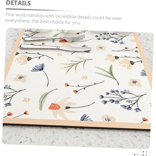 ÇİÇEKLİ KAYMAZ SERVİS MATIMasalarınıza Baharın Tazeliğini TaşıyınÇiçekli Servis Matı, 40x30 cm ölçülerinde ve sadece 0,25 cm inceliğinde, hem zarif hem de işlevsel bir dokunuş sunar. Kaymaz tabanıyla güvenli bir kullanım deneyimi sağlayan bu mat, yüksek kaliteli PVC, diatom sızıntısı, sünger ve kauçuk gibi dayanıklı malzemelerden üretilmiştir. Modern tasarımı, mutfak ve yemek masalarınıza stil katarak dekorasyonunuzu aydınlatır. İnce işçiliği sayesinde uzun süreli kullanım için sağlam ve dayanıklıdır.Kompakt boyutuyla saklaması ve temizlemesi son derece kolay olan bu servis altlığı, mutfağınızda pratik bir yardımcıdır. Zarif çiçek desenleriyle sofralarınıza baharın tazeliğini getirirken, her yemeği keyifli bir deneyime dönüştürür. Bu yıkanabilir ve yeniden kullanılabilir mat, hem şıklığı hem de işlevselliğiyle evinizin vazgeçilmezi olmaya aday. Bu özel servis matıyla, hem masalarınızı koruyun hem de dekorasyonunuza zarif bir dokunuş ekleyin.