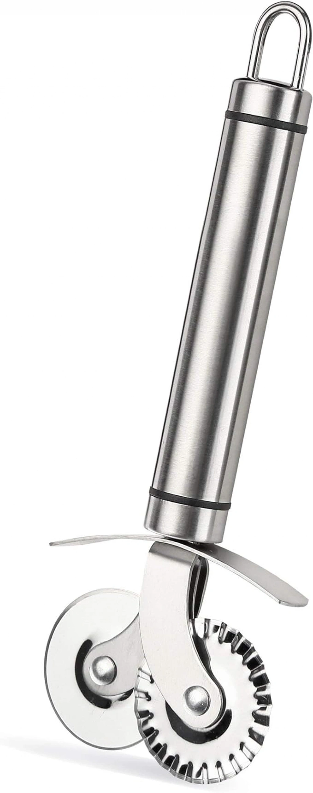 Dayanıklı ve sağlam yapısıyla bu çift başlıklı pizza ve hamur bıçağı, mutfakta pratiklik ve işlevselliği bir araya getirir.