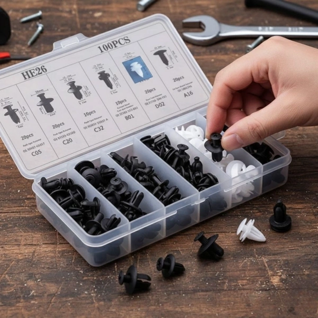 ÇOK AMAÇLI PLASTİK BAĞLANTI KLİPSİ SETİ 100 PARÇAÜrün ÖzellikleriÇok amaçlı plastik bağlantı klipsi seti 100 parça, araç bakım ve onarım işlemlerinde pratik, düzenli ve güvenilir bir kullanım sunmak üzere farklı ölçü ve tiplerde oto klipsi ile plastik perçinleri bir araya getirir. Tampon, kapı döşemesi ve trim parçalarının sabitlenmesinde ideal olan bu set, araç iç ve dış plastik aksamların montaj ve yenileme işlemlerinde geniş uyumluluk sağlar. Oto tampon ve çamurluk bağlantıları, kapı döşemeleri, iç trim parçaları, motor kaputu ve bagaj içi kaplamalar gibi birçok alanda güvenle kullanılabilir. Yüksek kaliteli plastikten üretilen klips ve perçinler darbelere ve titreşime karşı dayanıklıdır, uzun süreli kullanımda gevşeme yapmadan sağlam tutuş sunar. Özel tasarımı sayesinde klipsler kolayca takılıp sökülebilir ve bakım ile tamir süreçlerinde zamandan tasarruf sağlar. Setin bölmeli ve şeffaf saklama kutusu, parçaların karışmadan muhafaza edilmesine ve ihtiyaç duyulan klipse hızlıca ulaşılmasına imkân tanır. Ev kullanıcıları ve profesyonel oto servisleri için düzenli ve taşınabilir bir çözüm sunar.Paket İçeriği100 parça çok amaçlı plastik bağlantı klipsi ve perçin seti