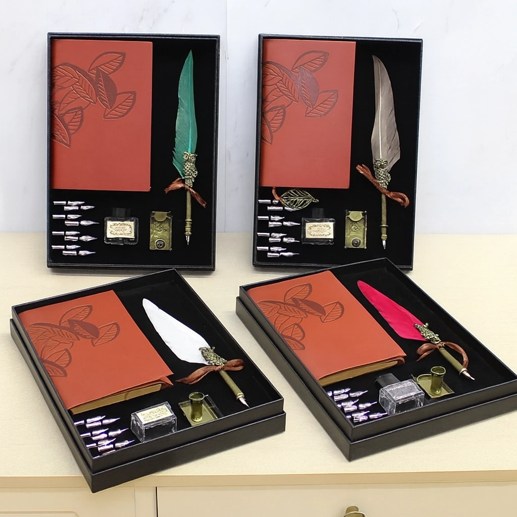 DERİ DEFTERLİ DİVİT HOKKA SETİ MODEL 1Ürün ÖzellikleriDeri Defterli Divit Hokka Seti Model 1, nostaljik yazı deneyimini modern bir sunumla bir araya getiren şık ve özel bir yazı setidir. 29x21 cm kutu boyutuna sahip bu set, deri kapaklı defter, divit kalem, farklı uç seçenekleri ve hokka mürekkebiyle zengin bir kullanım alanı sunar. Deri defter kişisel notlar, özel yazılar, günlük tutma ve kaligrafi çalışmaları için ideal bir yüzey sağlarken divit kalem nostaljik ve estetik bir yazım hissi yaratır. Hokka mürekkebi ile birlikte sunulan farklı uçlar hem ince hem kalın hatlarda yazı yazma imkânı verir. Hem koleksiyon değeri taşıyan hem de özel bir hediye niteliği sunan bu set, yazı sanatına ilgi duyanlar için ideal bir tercihtir. Renk seçimi yapılamaz; görseldeki seçeneklerden biri karışık olarak gönderilir.Paket İçeriği1 adet Deri Defterli Divit Hokka Seti Model 1