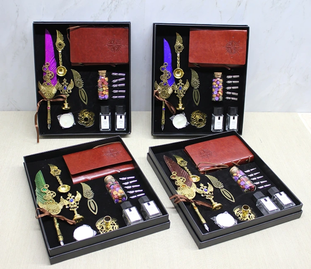 DERİ DEFTERLİ DİVİT HOKKA VE MÜHÜR SETİ MODEL 2Ürün ÖzellikleriDeri Defterli Divit Hokka ve Mühür Seti Model 2, nostaljik yazım deneyimini zengin bir içerikle birleştiren özel bir kaligrafi ve mühürleme setidir. 30x25 cm boyutundaki şık hediye kutusu içerisinde yer alan deri kapaklı defter, klasik divit kalem, farklı uç alternatifleri, hokka mürekkebi, balmumu ve mühür aparatı; hem estetik hem de fonksiyonel kullanım için özenle hazırlanmıştır. Deri defter, özel yazılar, günlük notlar ve hat sanatı çalışmaları için ideal bir yazım yüzeyi sunarken divit kalem ve hokka mürekkebi nostaljik bir yazı deneyimi sağlar. Mühür ve balmumu detayları ise özel mektupların, davetiyelerin ve belgelerin kişisel mühürleme ile tamamlanmasına imkân tanır. Renk seçimi yapılamaz; görseldeki seçeneklerden biri karışık olarak gönderilir. Hem koleksiyon değeri taşıyan hem de etkileyici bir hediye niteliği sunan şık bir settir.Paket İçeriği1 adet Deri Defterli Divit Hokka Ve Mühür Seti Model 2