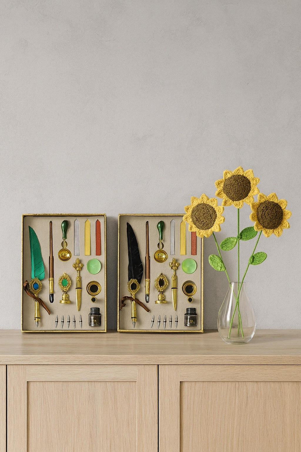DIVIT HOKKA VE MÜHÜR SETİÜrün ÖzellikleriDivit Hokka ve Mühür Seti, nostaljik yazım deneyimini modern dokunuşlarla bir araya getiren özel bir koleksiyon setidir. 29x21 cm ölçülerindeki şık sunum kutusu içerisinde yer alan divit kalem, değiştirilebilir uçlar, hokka mürekkebi, balmumu ve mühür aparatı; hem estetik hem de fonksiyonel bir kullanım sunar. El yazısı sanatını sevenler, hat sanatıyla ilgilenenler, kişisel mühür hazırlamak isteyenler veya özel bir hediye arayanlar için ideal bir settir. Kutu içeriğindeki tüm parçalar özenle yerleştirilmiş olup her bir detay, vintage bir atmosfer oluşturacak şekilde tasarlanmıştır. Renk seçimi yapılamaz; görseldeki farklı renklerden biri karışık olarak gönderilir. Hem dekoratif hem de kullanıma uygun olması bu seti özel kılan en önemli özelliklerdendir.Paket İçeriği1 adet Divit Hokka Ve Mühür Seti1 adet Divit KalemChatGPT:DIVIT HOKKA VE MÜHÜR SETİÜrün ÖzellikleriDivit Hokka ve Mühür Seti, nostaljik yazım deneyimini modern dokunuşlarla bir araya getiren özel bir koleksiyon setidir. 29x21 cm ölçülerindeki şık sunum kutusu içerisinde yer alan divit kalem, değiştirilebilir uçlar, hokka mürekkebi, balmumu ve mühür aparatı; hem estetik hem de fonksiyonel bir kullanım sunar. El yazısı sanatını sevenler, hat sanatıyla ilgilenenler, kişisel mühür hazırlamak isteyenler veya özel bir hediye arayanlar için ideal bir settir. Kutu içeriğindeki tüm parçalar özenle yerleştirilmiş olup her bir detay, vintage bir atmosfer oluşturacak şekilde tasarlanmıştır. Renk seçimi yapılamaz; görseldeki farklı renklerden biri karışık olarak gönderilir. Hem dekoratif hem de kullanıma uygun olması bu seti özel kılan en önemli özelliklerdendir.Paket İçeriği1 adet Divit Kalem