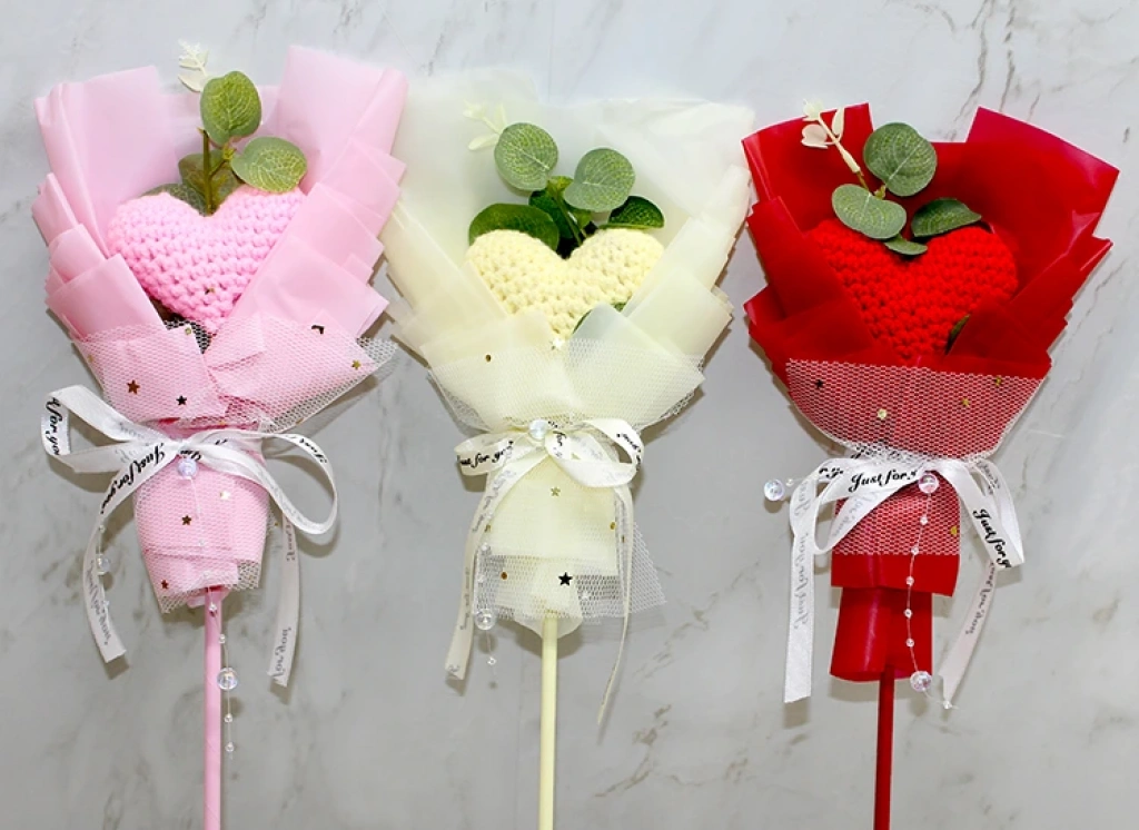 EL ÖRGÜSÜ KALP ÇİÇEĞİ BUKETİÜrün ÖzellikleriEl Örgüsü Kalp Çiçeği Buketi, el emeği ile hazırlanmış romantik ve dekoratif bir çiçek tasarımıdır. 40x7 cm boyutundaki zarif yapısı ile masa üstü dekorlarında, hediye sunumlarında, özel gün kutlamalarında ve fotoğraf çekimi konseptlerinde estetik bir tamamlayıcı olarak kullanılabilir. Örgü kalp çiçeklerinin yumuşak dokusu ürüne sıcak ve sevimli bir görünüm katarken, buketin etrafındaki tül ve kurdele detayları hediye edilmeye hazır şık bir sunum sağlar. İnce sap yapısı sayesinde dekorasyonda kolay konumlandırılabilir. Renk seçimi yapılamaz; görseldeki renklerden biri karışık olarak gönderilir. El yapımı ve dekoratif ürün sevenler için romantik ve anlamlı bir seçenektir.Paket İçeriği1 adet El Örgüsü Kalp Çiçeği Buketi