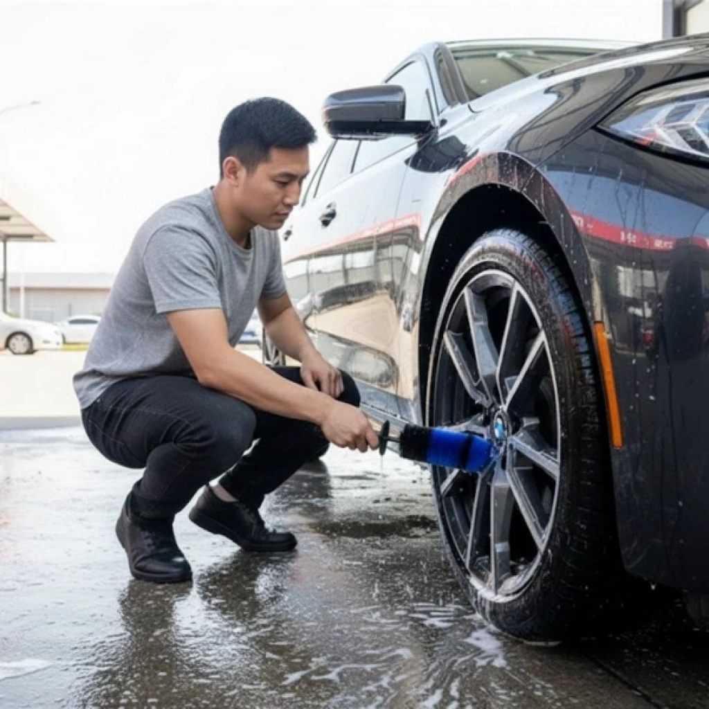 Ergonomik Saplı Jant ve Lastik Temizleme Fırçası