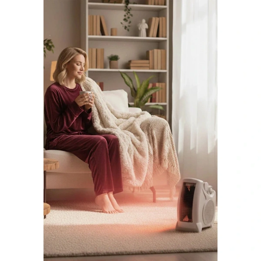 Fanlı Isıtıcı Soba, dört mevsim kullanım için tasarlanmış güçlü, pratik ve güvenli bir ısıtma çözümüdür. 2 kademeli ısıtma gücü (1000W / 2000W) sayesinde ortamı hızlı şekilde ısıtır ve ihtiyaca göre düşük veya yüksek güçte sıcak hava akışı sağlar. Soğuk hava üfleme özelliği ile yalnızca kışın değil, yaz aylarında da ferahlatıcı bir fan olarak kullanılabilir. Yatay ve dikey kullanım imkânı sunan özel tasarımı, ürünü farklı alanlarda konumlandırmayı kolaylaştırır ve daha geniş bir hava sirkülasyonu sağlar.Metal hava çıkış ızgarası, yüksek ısıya dayanıklı yapısıyla güvenli kullanım sunarken cihazın ürettiği ısının daha hızlı ve eşit şekilde ortama yayılmasına yardımcı olur. Bu sayede daha verimli ısınma elde edilir ve enerji tasarrufu sağlanır. Ayarlanabilir termostat özelliği, ortam sıcaklığını otomatik olarak sabit tutarak konforlu bir ısınma deneyimi sunar. Hafif ve taşınabilir yapısı, ev, ofis veya çalışma odalarında kolayca kullanılmasına olanak tanır.Modern tasarımı, hızlı ısıtma gücü ve çok yönlü kullanım özellikleriyle Fanlı Isıtıcı Soba, kış aylarında sıcak, yaz aylarında ise serin bir ortam yaratmak isteyen herkes için ideal bir çözümdür.