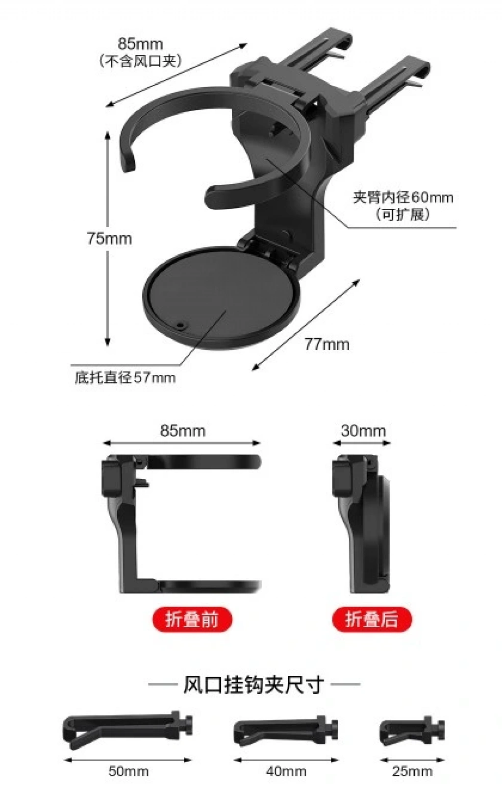 Katlanabilir araba bardak şişe tutucu, sürüş esnasında içeceklerinizi güvenli bir şekilde sabit tutarak konfor sağlar. 7.5 x 7.7 x 8.5 cm boyutundaki kompakt yapısı sayesinde araç içinde fazla yer kaplamaz. Kullanılmadığında katlanabilir özelliğiyle pratik şekilde saklanabilir, gerektiğinde kolayca açılarak kullanıma hazır hale gelir. Su şişesi, kutu içecek, kahve bardağı ve termoslarla uyumlu olarak tasarlanmıştır. Isıya ve darbelere dayanıklı kaliteli plastikten üretilmiştir. Araç içi klima ızgaralarına kolayca monte edilerek sürüş esnasında sabit durur ve içeceklerin dökülmesini önler. Araç içi düzen ve kullanım kolaylığı için ideal bir aksesuardır.