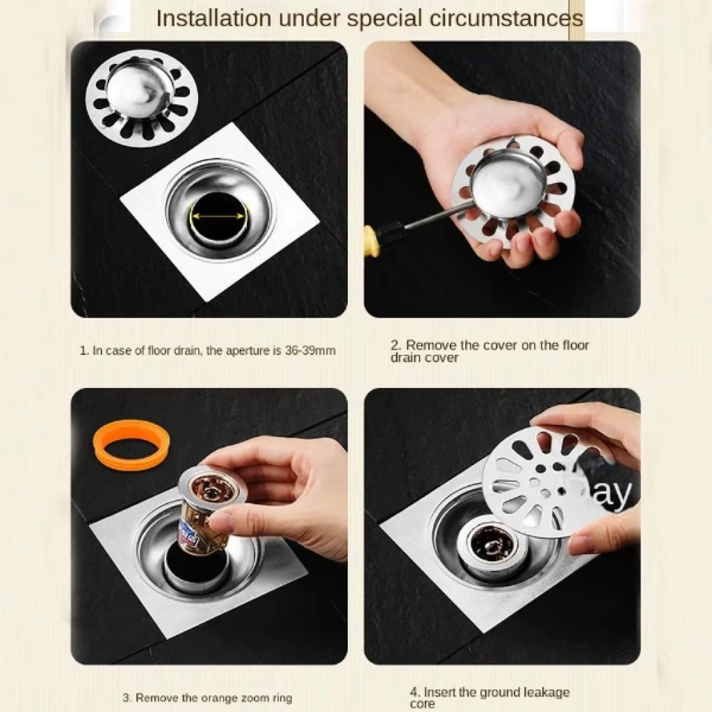 Paslanmaz çelik ızgarası su akışını düzenlerken büyük parçaların giderden geçmesini önler ve tıkanıklık oluşumunu engeller. Turuncu silikon conta sızdırmazlık sağlar ve farklı boyutlardaki gider borularına uyum sağlar. Şeffaf dış yapı su akışını ve sistemin işleyişini kolayca gözlemleme olanağı sunar.