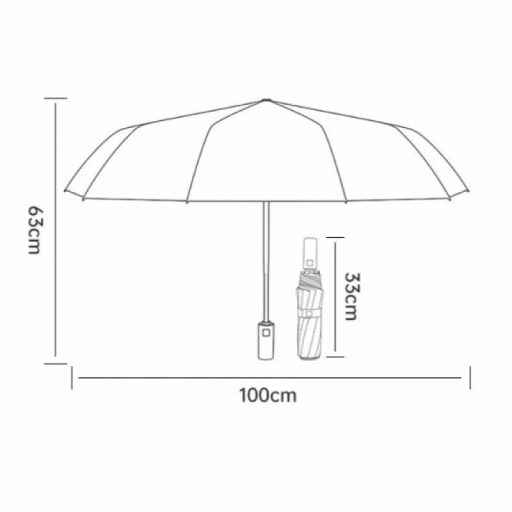 Dayanıklı metal gövdesi ve rüzgâr direncine sahip kumaş yapısı, uzun ömürlü kullanım imkânı tanır. Şemsiye açıldığında 100 cm genişlik, kapandığında ise 33 cm uzunluk ölçüsüne sahiptir; bu sayede hem bireysel hem de çift kullanım için uygundur. Özel tasarım kılıfı sayesinde kullanımdan sonra kolayca saklanabilir.