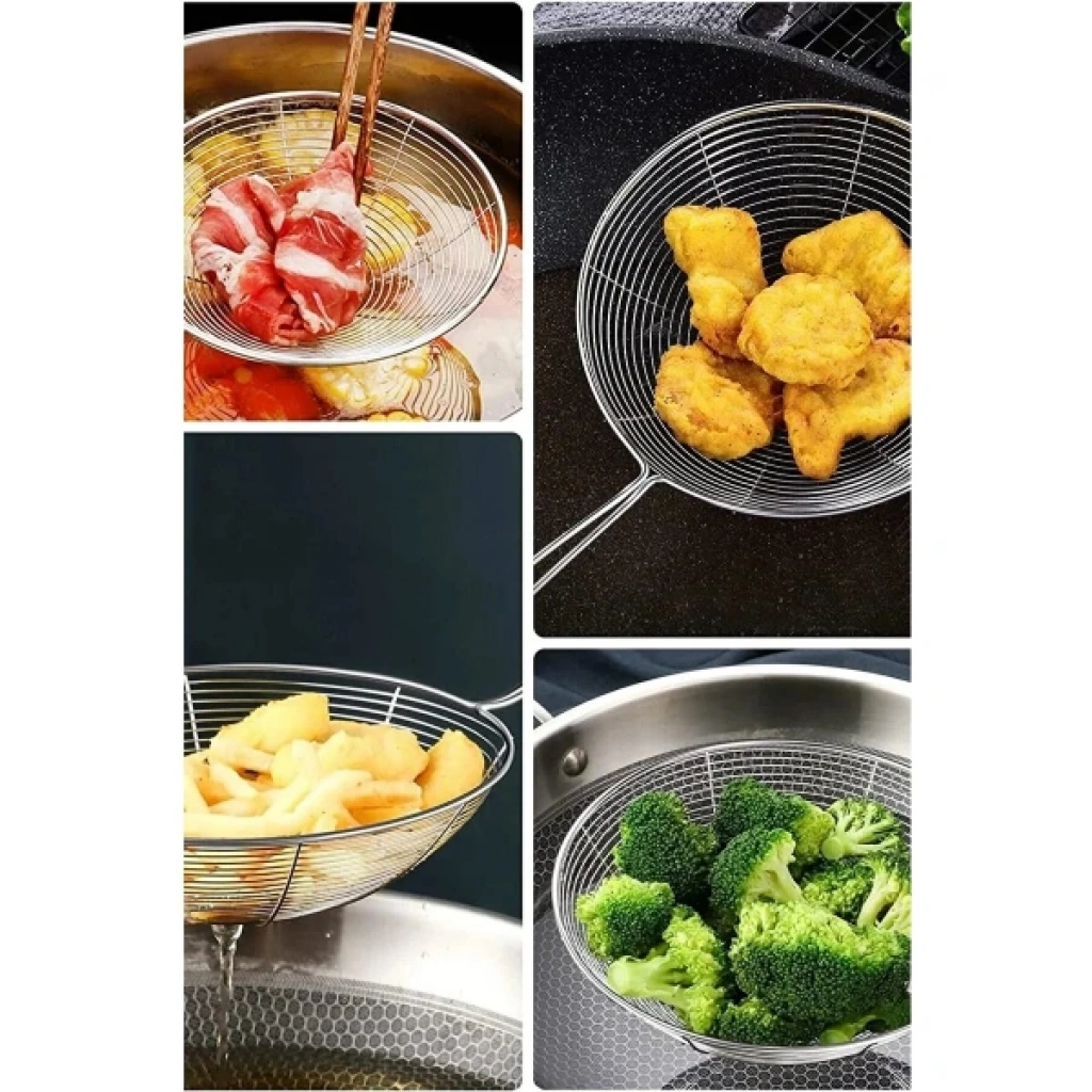 PASLANMAZ ÇELİK KEVGİRÜrün ÖzellikleriPaslanmaz çelikten üretilmiş olan bu kevgir, dayanıklı yapısı ve pratik kullanımıyla mutfakta vazgeçilmez bir yardımcıdır. 16 cm uzunluğundaki kompakt yapısıyla özellikle küçük tencerelerde ve az miktarda gıda ile yapılan kızartmalarda büyük kolaylık sağlar. Tel yapısı sayesinde kızartma yağı gibi sıvıların hızla süzülmesine olanak tanır. Ergonomik sapı el yakmaz ve güvenli bir tutuş sağlar. Paslanmaz çelik yüzeyi sayesinde hijyeniktir ve uzun ömürlü kullanım sunar. Bulaşık makinesinde yıkanabilir. Ev mutfaklarında olduğu kadar profesyonel mutfaklarda da tercih edilen bir üründür.Paket İçeriği1 Adet Paslanmaz Çelik Kevgir