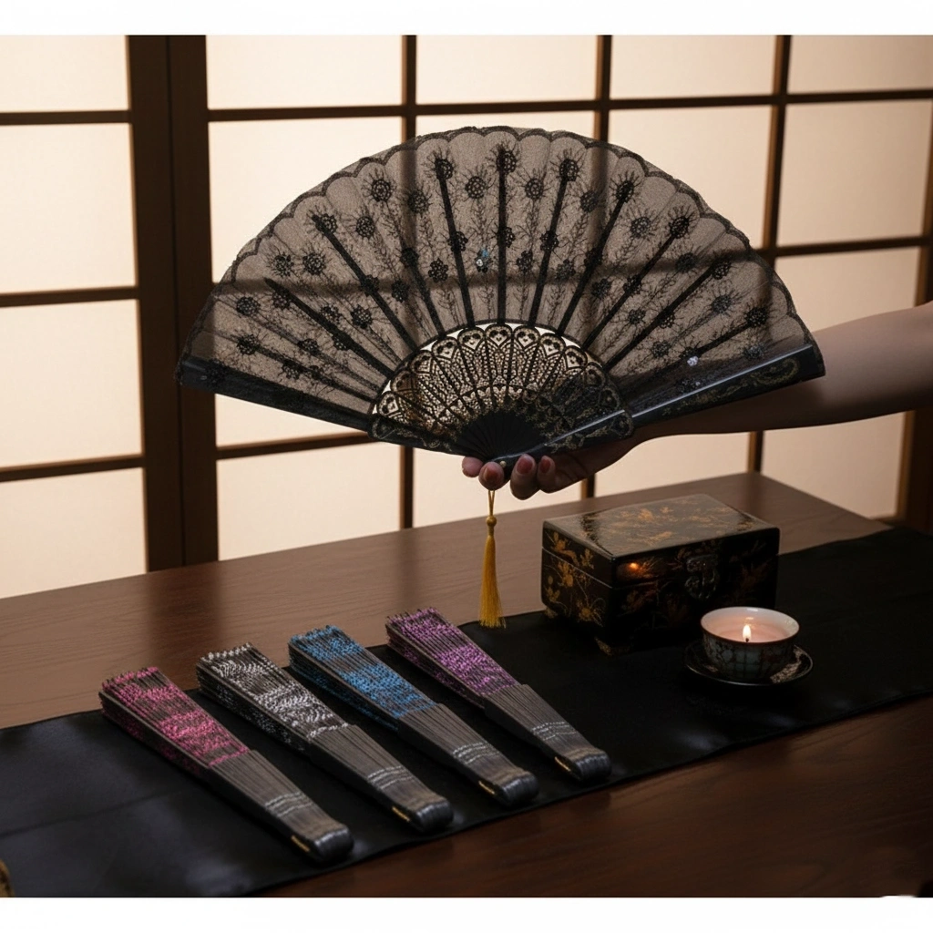 Plastik Pullu Yelpaze Siyah Renk