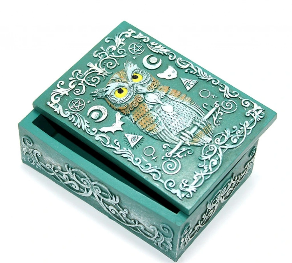 POLYESTER BAYKUŞ TASARIMI KUTUÜrün ÖzellikleriPolyester Baykuş Tasarımı Kutu, mistik ve dekoratif detaylarıyla dikkat çeken özel bir saklama kutusudur. Kapağında zarif işlemelere sahip kabartmalı baykuş figürü bulunmakta olup, büyüleyici tasarımı ile estetik bir görünüm sunar. Dayanıklı polyester malzemeden üretilmiş olup, uzun ömürlü kullanım sağlar. Takılarınızı, küçük eşyalarınızı veya değerli objelerinizi güvenle saklamak için ideal bir üründür. Aynı zamanda dekoratif bir obje olarak kullanılarak mistik bir atmosfer yaratır.Paket İçeriği1 Adet Polyester Baykuş Tasarımı Kutu