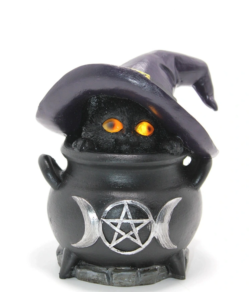 POLYESTER KEDİ LEDLİÜrün ÖzellikleriPolyester Kedi Ledli, mistik ve gotik dekorasyonlardan hoşlananlar için tasarlanmış özel bir figürdür. Kazan içindeki şapkalı kara kedi detayı, ürüne büyüleyici bir hava katarken, gözlerindeki LED ışıklar karanlıkta etkileyici bir görünüm sunar. Dayanıklı polyester malzemeden üretilmiş olup, uzun ömürlü bir kullanım sağlar. Pentagram ve ay sembolleriyle süslenmiş kazan tasarımı, cadı temalı dekorasyonları tamamlayan harika bir parçadır. Ev, ofis ya da koleksiyon amaçlı tercih edilebilir.Paket İçeriği1 Adet Polyester Kedi Ledli