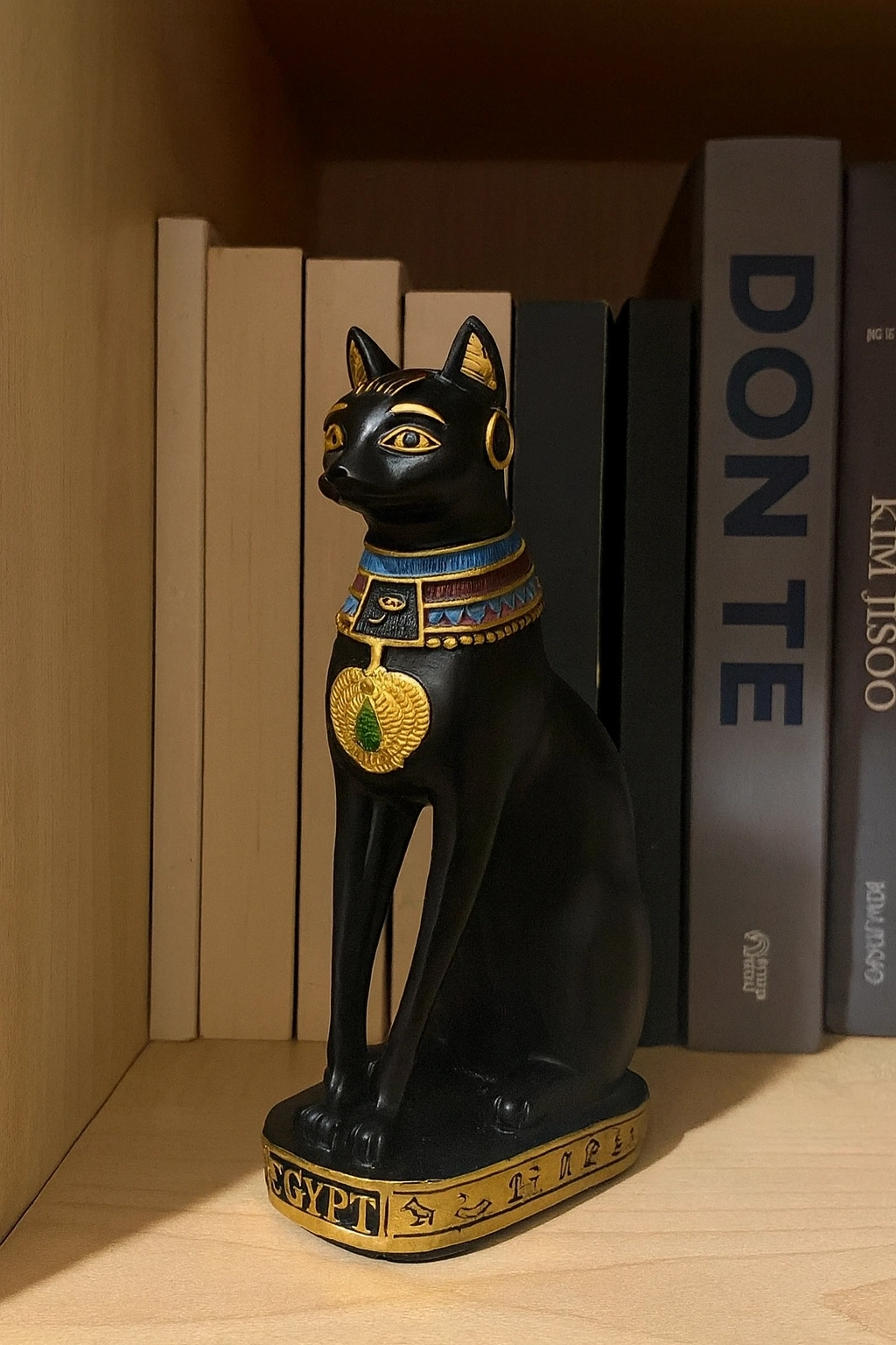 POLYESTER MISIR KEDİSİ FİGÜRÜrün ÖzellikleriPolyester Mısır Kedisi Figür, antik Mısır kültüründen ilham alınarak tasarlanmış dekoratif ve estetik bir figürdür. 25 cm boyutundaki ideal ölçüsü sayesinde ev, ofis, vitrin ve konsept dekorlarında şık bir tamamlayıcı olarak kullanılabilir. Polyester malzemeden üretilmiş olması ürüne sağlamlık, hafiflik ve uzun ömür kazandırırken detaylı işçiliği sayesinde görsel açıdan dikkat çekici bir duruş sergiler. Siyah ve altın tonlarının birleşimi figüre mistik ve asil bir hava verir. Tarihi temalı dekorasyonları sevenler, koleksiyon yapanlar veya özel bir dekoratif obje arayanlar için ideal bir seçenektir. Bulunduğu ortama eski Mısır'ın sembolik atmosferini taşır.Paket İçeriği1 adet Polyester Mısır Kedisi Figür