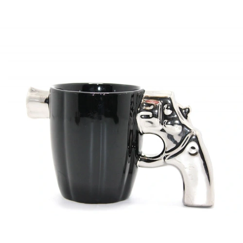 PORSELEN SİLAHLI KUPA BARDAK - MODEL 1 Ürün ÖzellikleriPorselen silahlı kupa bardak, sıradışı tasarımıyla dikkat çeken, koleksiyonluk ve şık bir aksesuardır. 10x17 cm ölçülerine sahip olup, yüksek kaliteli porselenden üretilmiştir. Kabza şeklindeki kulbu sayesinde farklı ve cesur bir tasarıma sahiptir. Kahve, çay ve diğer sıcak içecekler için ideal olup, hem günlük kullanım hem de dekoratif amaçlı tercih edilebilir. Özgün tasarımıyla koleksiyoncular ve sıra dışı hediyeler arayanlar için mükemmel bir seçimdir.Paket İçeriği1 adet Porselen Silahlı Kupa Bardak (Model 1).