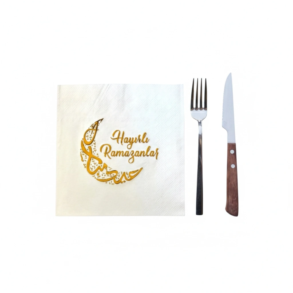 Ramazan Temalı Yaldız Baskılı PeçeteÜrün İçeriğiRamazan Temalı Yaldız Baskılı Peçete, iftar ve sahur sofralarınızı unutulmaz bir şölene dönüştürmek için tasarlandı. Üzerinde yer alan altın rengi ay ve kandil figürleri, Ramazan ayının huzur dolu atmosferini sofralarınıza taşır. Yaldız baskının sunduğu şıklık, hem evdeki aile yemeklerinde hem de restoranların özel iftar davetlerinde estetik bir sunum sağlar. Maneviyatı ve zarafeti bir araya getiren bu peçetelerle misafirlerinize verdiğiniz değeri hissettirebilirsiniz.Ürün ÖzellikleriÖzellikAçıklamaTemaRamazan Özel (Ay ve Kandil Figürlü)Baskı TipiŞık Altın Rengi Yaldız BaskıPaket Adedi16 Yaprak PeçeteKullanım Alanıİftar ve Sahur Sofraları, Restoranlar, MevlidlerKullanım AmacıDekoratif Sunum ve Hijyenik KullanımVaryantFarklı Desen ve Renk Seçenekleri (Stok durumuna göre karışık gönderilir)StilGeleneksel ve Modernin Şık UyumuPaket İçeriği1 Paket Ramazan Temalı Yaldız Baskılı Peçete (İçerisinde 16 adet yaprak bulunmaktadır.)