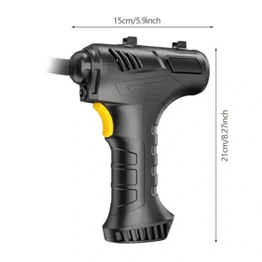 Şarjlı el tipi hava kompresörü kompakt yapısıyla kolay taşınabilir ve pratik kullanım sağlar.