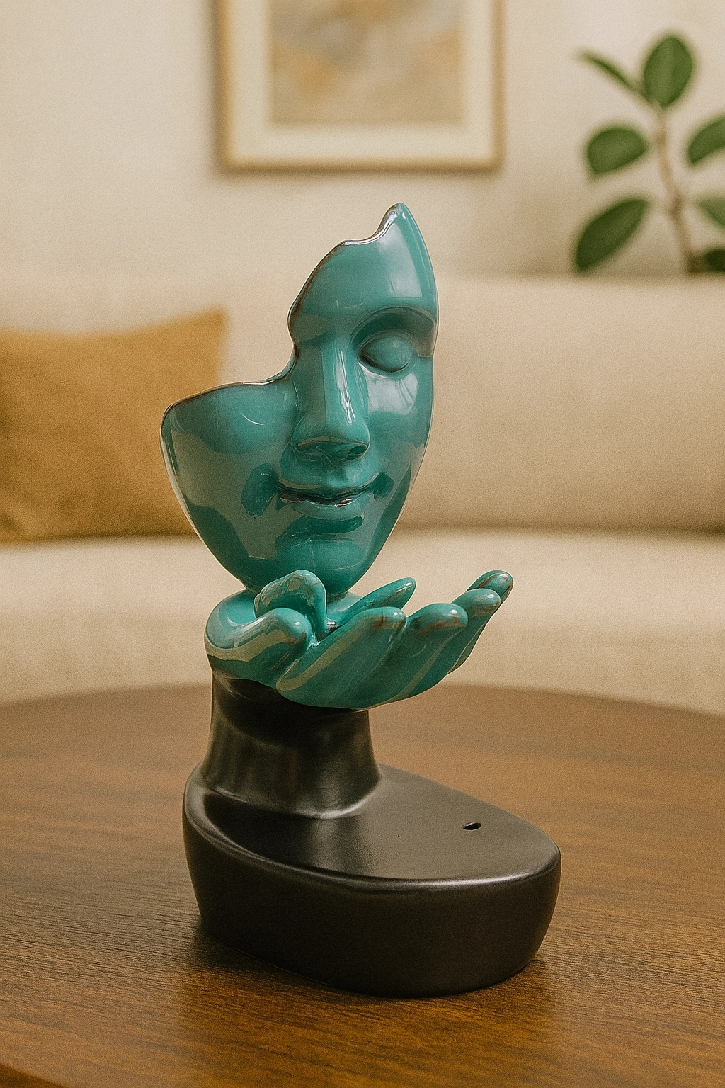Seramik Mask Tasarımlı Geri Akış Tütsülük, mistik mask formu ve modern hatlarıyla hem dekoratif hem de aromaterapi amaçlı kullanılabilen etkileyici bir tasarımdır. 10x7 cm boyutundaki kompakt yapısı sayesinde çalışma masasında, meditasyon köşelerinde, oturma odalarında veya hediye amaçlı kullanımda ideal bir tercih sunar. Seramik malzeme kullanılarak üretilen bu tütsülük, yüksek ısıya dayanıklı yapısıyla geri akış konik tütsülerin güvenli bir şekilde kullanılmasını sağlar. Geri akış özelliği sayesinde tütsü dumanı maskenin içinden aşağı doğru süzülerek görsel olarak sakinleştirici ve estetik bir şelale etkisi oluşturur. Ortama dinginlik katan duman akışı, hem ruhsal rahatlama hem de dekoratif zenginlik sunar.