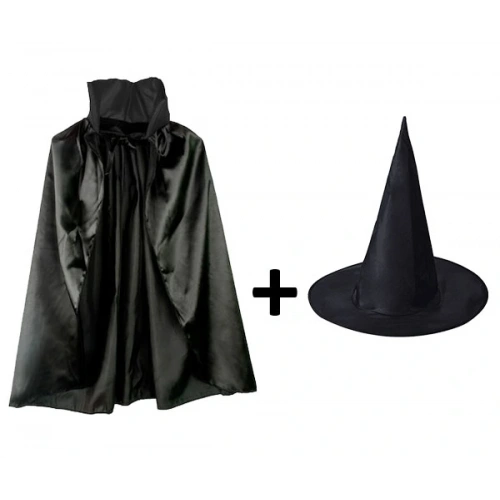 Siyah Yakalı Pelerin Ve Siyah Cadı Şapkası Seti Çocuk Boy