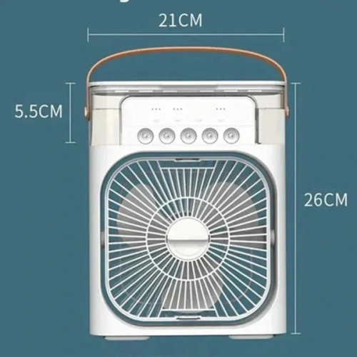 SU HAZNELİMASA VANTİLATÖRÜÜrün Özellikleri21 cm genişliğinde, 26 cm yüksekliğinde ve 5.5 cm derinliğinde olan su hazneli  masa vantilatörü, hem serinletici hem de nemlendirici özelliğiyle yaz aylarında ferah bir ortam sunar. Üst kısmındaki 600 ml kapasiteli su haznesi musluk suyu ile doldurulabilir, istenirse buz da eklenerek daha serin bir etki elde edilebilir. Aynı anda 5 noktadan buhar püskürtme fonksiyonu ile geniş alanlarda etkili nemlendirme sağlar. 1 sprey ile 12 saat, 3 sprey ile 4 saat ve 5 sprey açıkken 2.5 saat kesintisiz çalışır. Taşıma sapı sayesinde kolayca taşınabilir. USB kablo ile çalışır ve farklı iç mekânlarda kullanıma uygundur. Klima gibi kuru hava yaratmaz, ortamın nem dengesini korur. Özellikle ev, ofis, yatak odası ve bebek odası gibi alanlarda tercih edilir.Paket İçeriği1 Adet Su Hazneli masa Vantilatörü